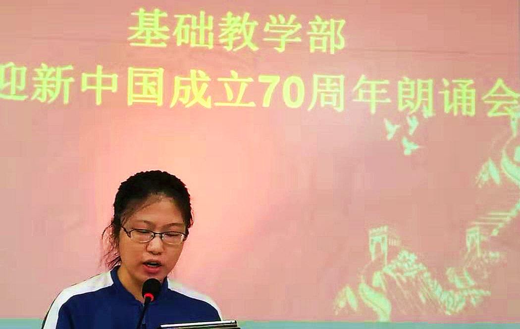 朗诵会开始后,各教学组老师争相上台,以饱满的热情,献上了《歌唱祖国》、《诗意中国》、《祖国啊,我亲爱的祖国》等一篇又一篇脍炙人口的诗歌。在场的基础教学部全体教师感受到了浓厚的爱国主义情怀,深受鼓舞。