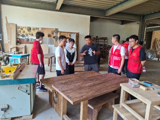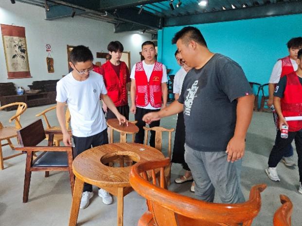 同学们在老榆木家具城负责人的带领下,对张营镇周边多家家具加工企业进行了实地考察,详细了解了木材原材料的来源、家具的生产制造工艺以及企业的生产经营状况。