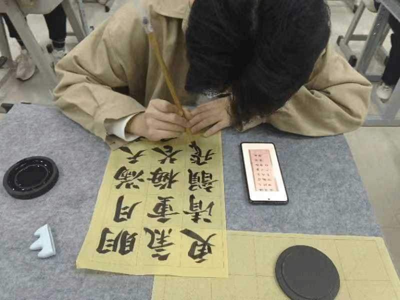 2023年3月7日晚自习期间,在团学会干部的安排下,墨韵书法室书法班进行了软硬笔书法临摹练习,让同学们领略到汉字的生命力和艺术魅力,懂得书法是文化的起始,是中国的国粹,不仅浸透着厚重的历史积淀,而且蕴含着蓬勃的时代精神,激发学生们学习书法的热情。