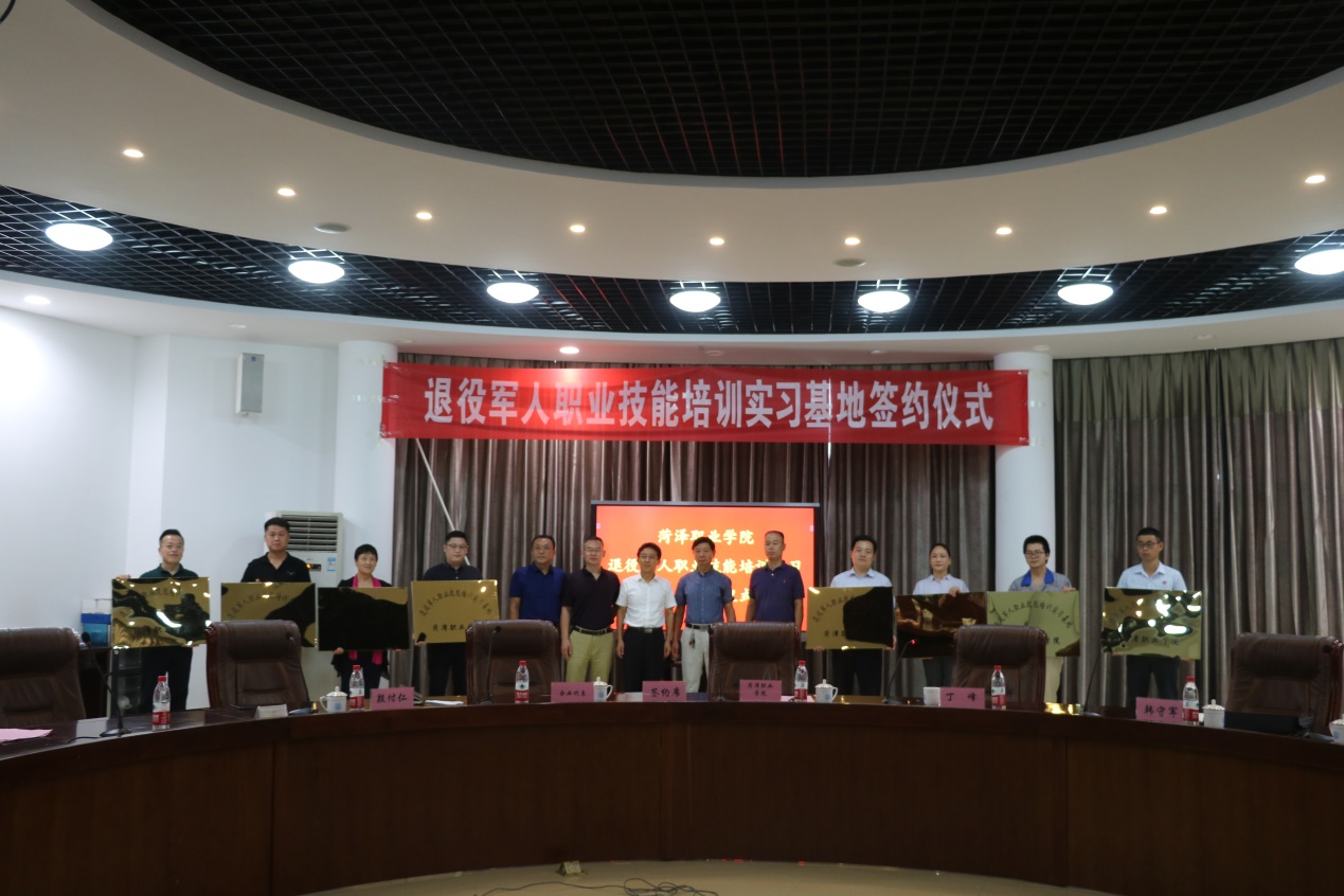 会议最后,陈俊启和八家企业代表分别签署了退役军人职业技能培训实习基地协议。丁峰和陈俊启分别向八家企业进行了“退役军人职业技能培训实习基地”授牌仪式。