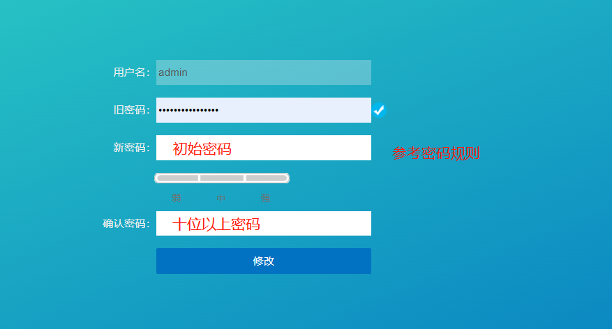 密码规则:使用“大小写字母+数字+特殊字符”形式(无前后顺序),长度超过10个字符的强度密码密码必须包含“大、小写字母+特殊字符+数字”(各类字符排列顺序不做固定要求),长度至少为10个字符的强度密码特殊字符@#*_ ,至少需要含有3个字母